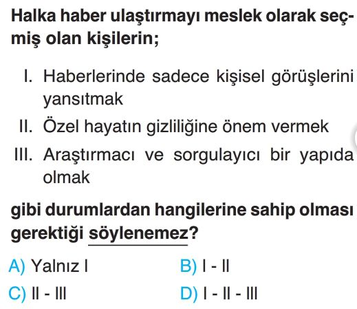 7. Sınıf Birey ve Toplum Ünite Değerlendirme Test 3