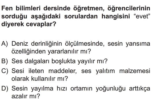 6. Sınıf Sesin Maddeyle Etkileşmesi Test 3