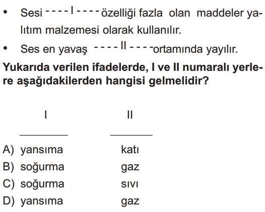 6. Sınıf Sesin Maddeyle Etkileşmesi Test 3