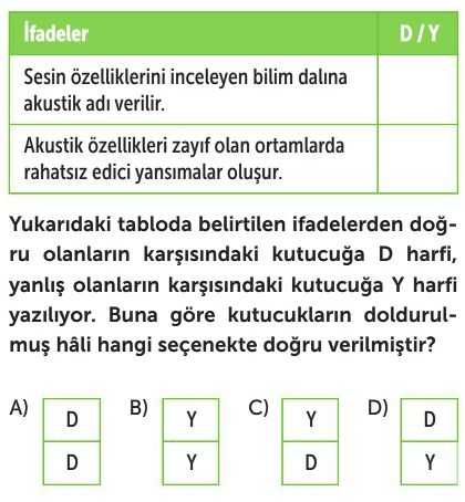 6. Sınıf Sesin Maddeyle Etkileşmesi Test 3