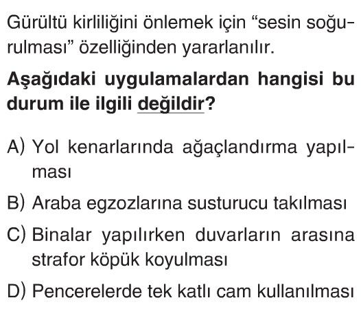 6. Sınıf Sesin Maddeyle Etkileşmesi Test 3