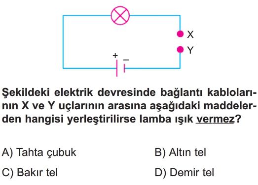 6. Sınıf İletken ve Yalıtkan Maddeler Test 3