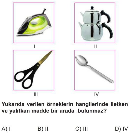 6. Sınıf İletken ve Yalıtkan Maddeler Test 5