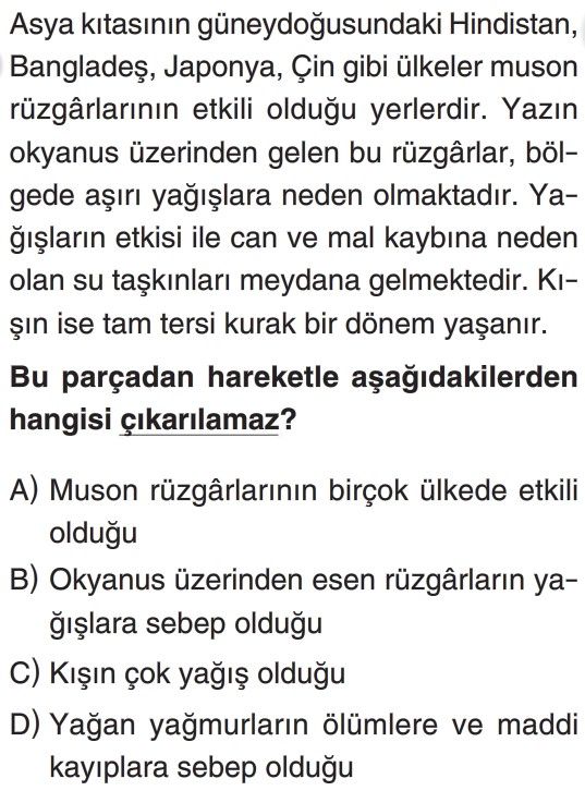 📝6. Sınıf Farklı İklimler Farklı Yaşamlar (Dünya'da İklim ve Yaşam) Test 4
