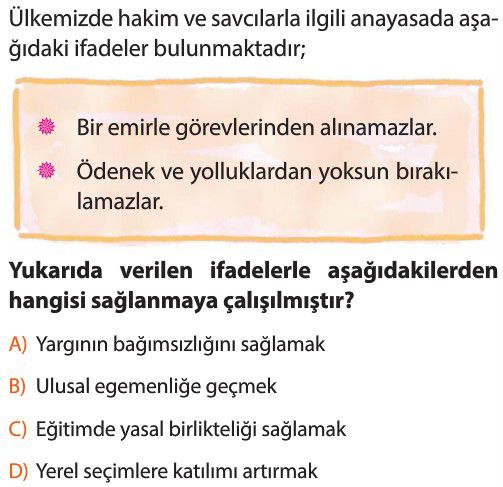 📝6. Sınıf Demokratik Devlet Ve Organları (Yasama, Yürütme ve Yargı) Test 2