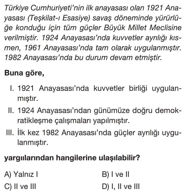 📝6. Sınıf Demokratik Devlet Ve Organları (Yasama, Yürütme ve Yargı) Test 3
