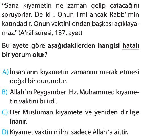 7. Sınıf Melek ve Ahiret İnancı Test 15