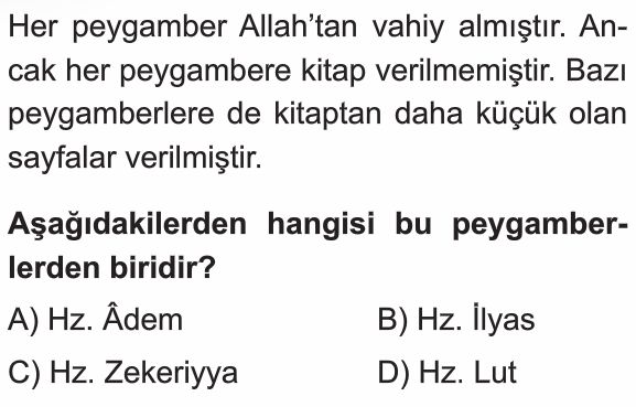 6. Sınıf Peygamber ve İlahi Kitap İnancı Ünite Değerlendirme Testi 8