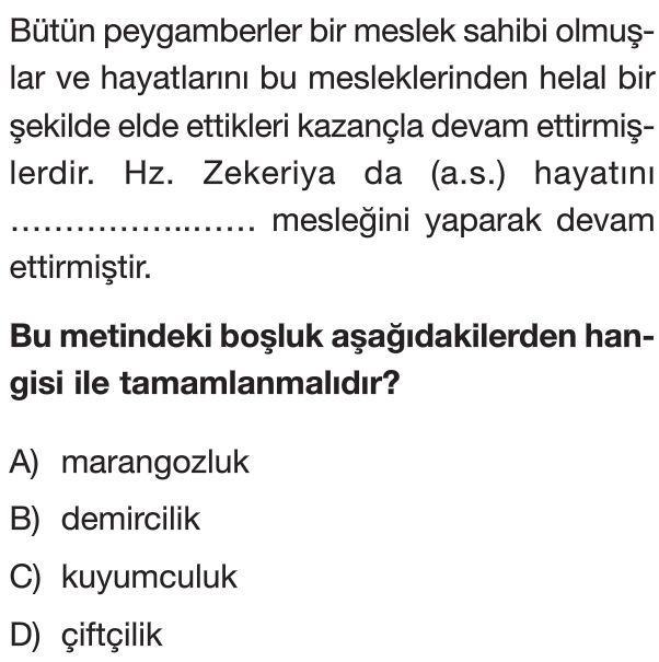 6. Sınıf Bir Peygamber Tanıyorum: Hz. Zekeriya (a.s.) Test 2