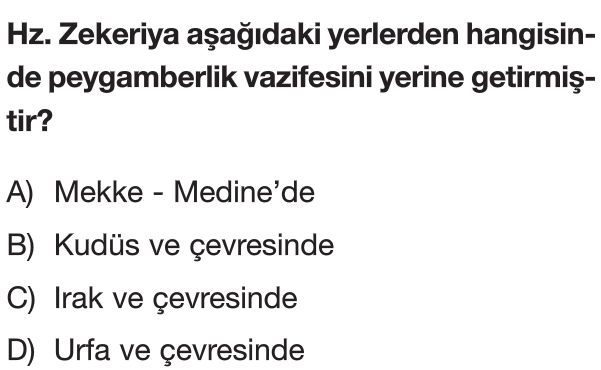 6. Sınıf Bir Peygamber Tanıyorum: Hz. Zekeriya (a.s.) Test 2