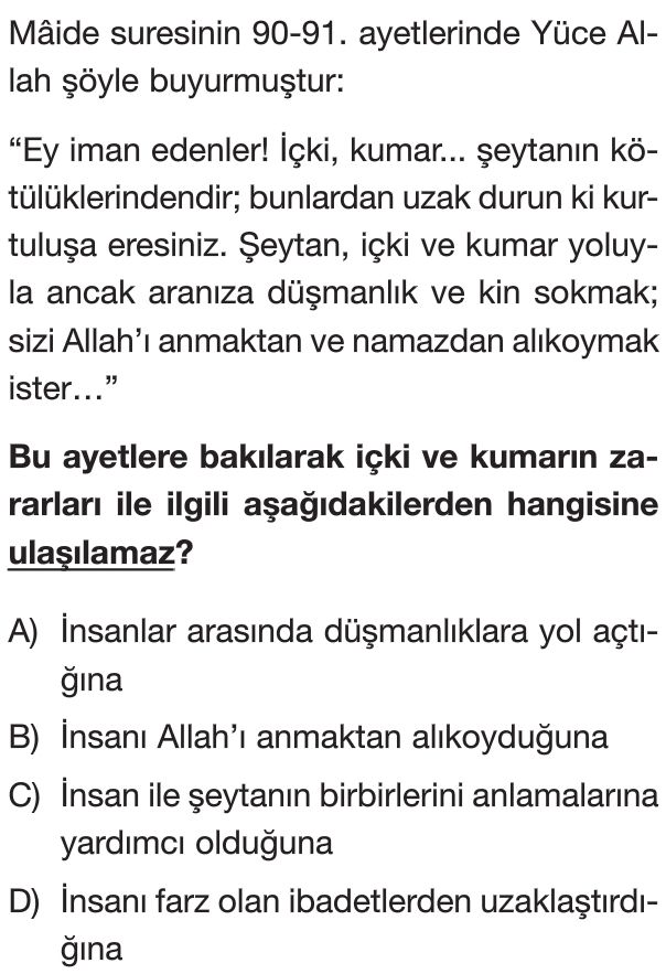 8. Sınıf Din Kültürü Testleri