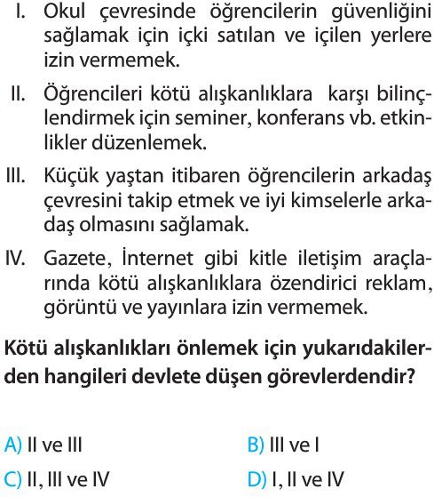 6. Sınıf Bazı Zararlı Alışkanlıklar Ünite Değerlendirme Testi 7