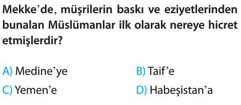 📝6. Sınıf Hz. Muhammed'in (s.a.v.) Daveti: Mekke Dönemi Test 10