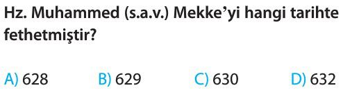 6. Sınıf Hz. Muhammed'in (s.a.v.) Daveti: Medine Dönemi Test 10