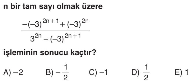 9. Sınıf Gerçek Sayıların Üslü Gösterimleri ile Yapılan İşlemler Test 1