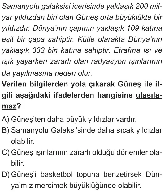 5. Sınıf Gökyüzündeki Komşumuz: Güneş (Güneş\'in Yapısı ve Dönme Hareketi) Test 4