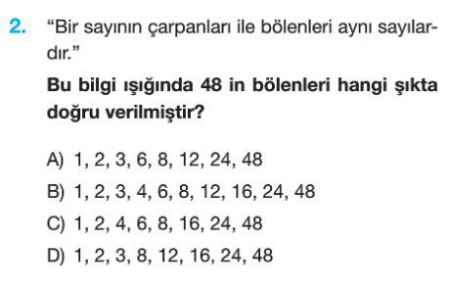 📝6. Sınıf Çarpanlar ve Katlar Test 2