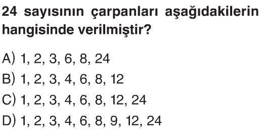6. Sınıf Çarpanlar ve Katlar Test 1