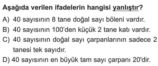📝6. Sınıf Çarpanlar ve Katlar Test 4
