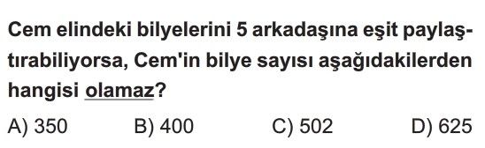 📝6. Sınıf Çarpanlar ve Katlar Test 5