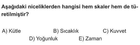 9. Sınıf Skaler ve Vektörel Nicelikler Test 1