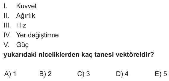 9. Sınıf Skaler ve Vektörel Nicelikler Test 1