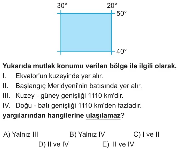 9. Sınıf Coğrafi Koordinatlar Test 1