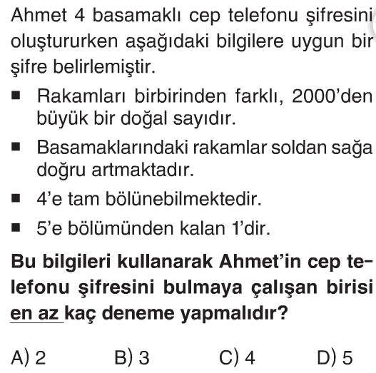 6. Sınıf Çarpanlar ve Katlar Test 4