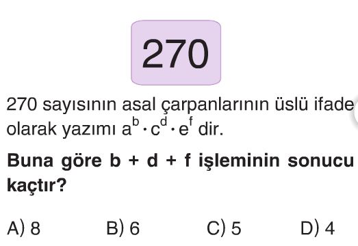 6. Sınıf Çarpanlar ve Katlar Test 5