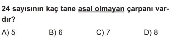 6. Sınıf Çarpanlar ve Katlar Test 5