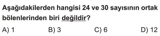6. Sınıf Çarpanlar ve Katlar Test 6
