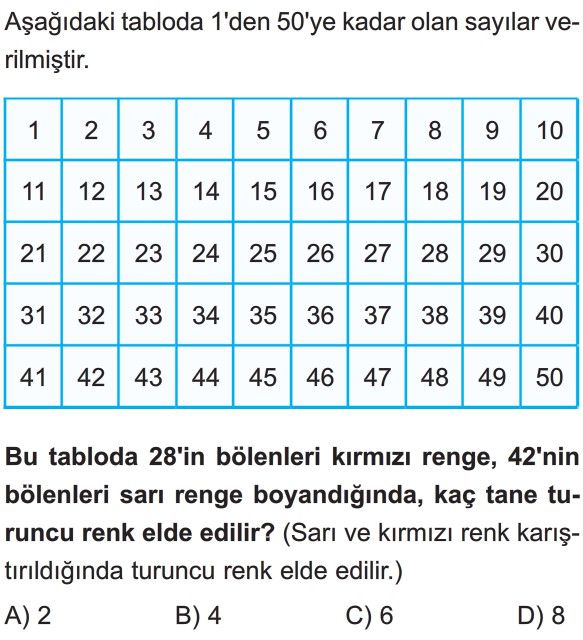 📝6. Sınıf Çarpanlar ve Katlar Test 7