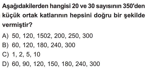 📝6. Sınıf Çarpanlar ve Katlar Test 4