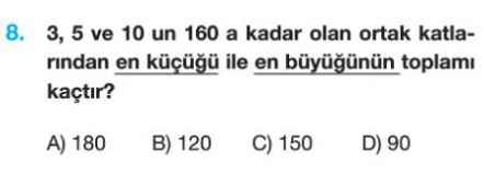 📝6. Sınıf Çarpanlar ve Katlar Test 8