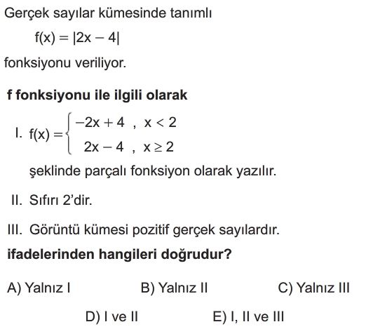 📝9. Sınıf Gerçek Sayılarda Tanımlı Mutlak Değer Fonksiyonları ve Nitel Özellikleri Test 7