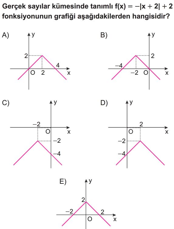 📝9. Sınıf Gerçek Sayılarda Tanımlı Mutlak Değer Fonksiyonları ve Nitel Özellikleri Test 5