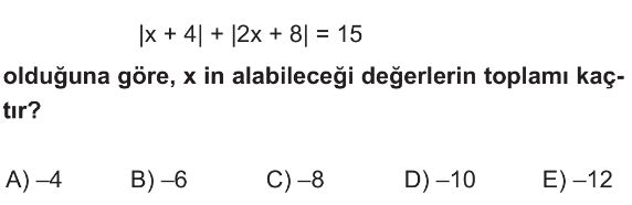 9. Sınıf Doğrusal Fonksiyonlarla İfade Edilebilen Denklem ve Eşitsizlikler İçeren Problemler Test 10
