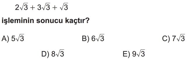 9. Sınıf Gerçek Sayıların Köklü Gösterimleri İle Yapılan İşlemler Test 3
