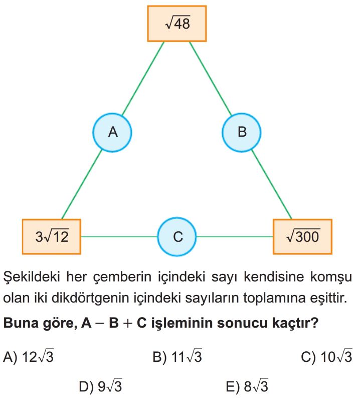 📝9. Sınıf Gerçek Sayıların Köklü Gösterimleri İle Yapılan İşlemler Test 10
