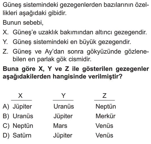 📝6. Sınıf Güneş Sistemi Test 10
