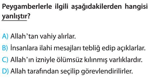 📝6. Sınıf Allah'ın (c.c.) Elçileri: Peygamberler Test 4