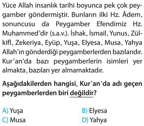 📝6. Sınıf Allah'ın (c.c.) Elçileri: Peygamberler Test 9