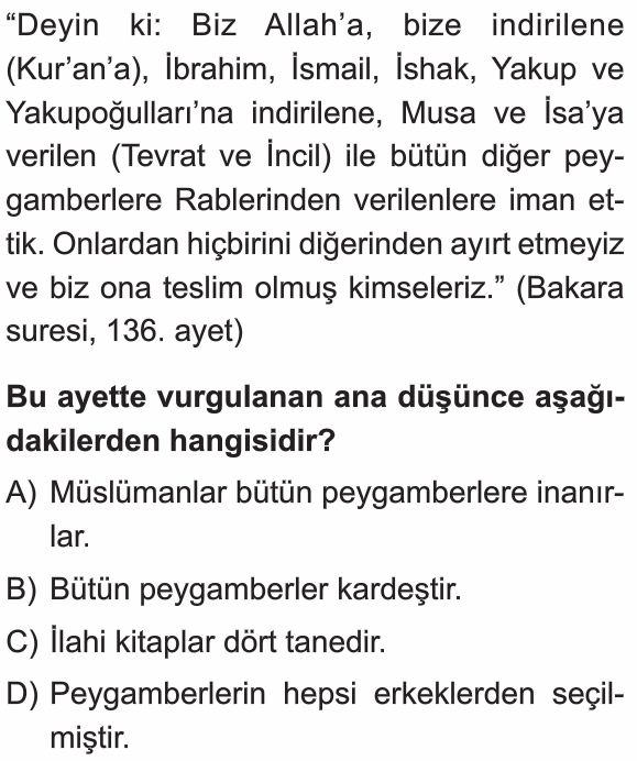📝6. Sınıf Allah'ın (c.c.) Elçileri: Peygamberler Test 9