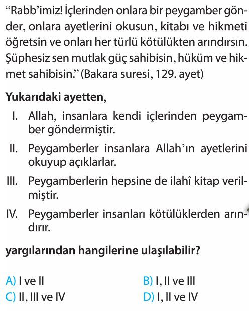 📝6. Sınıf Peygamberlerin Özellikleri ve Görevleri Test 4