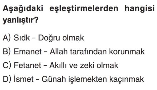 📝6. Sınıf Peygamberlerin Özellikleri ve Görevleri Test 4
