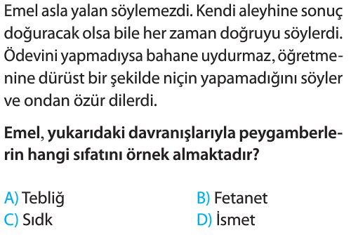 6. Sınıf Peygamberlerin Özellikleri ve Görevleri Test 2