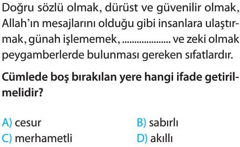 6. Sınıf Peygamberlerin Özellikleri ve Görevleri Test 2