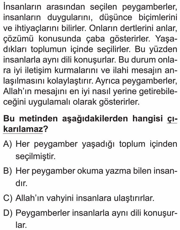 📝6. Sınıf Peygamberlerin Özellikleri ve Görevleri Test 4