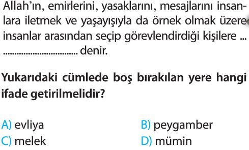 6. Sınıf Peygamberlerin Özellikleri ve Görevleri Test 3
