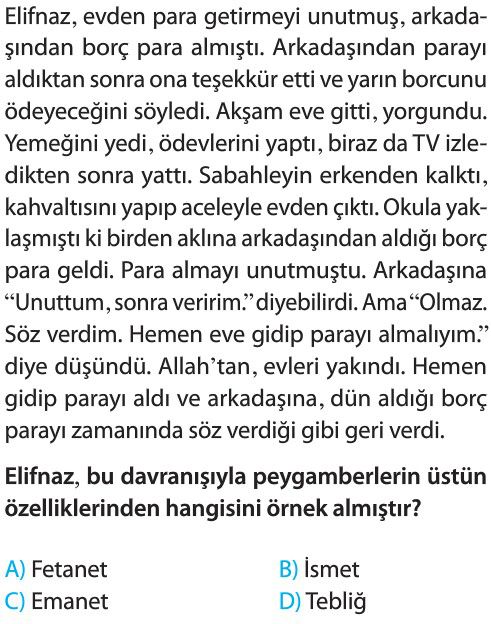 6. Sınıf Peygamberlerin Özellikleri ve Görevleri Test 3